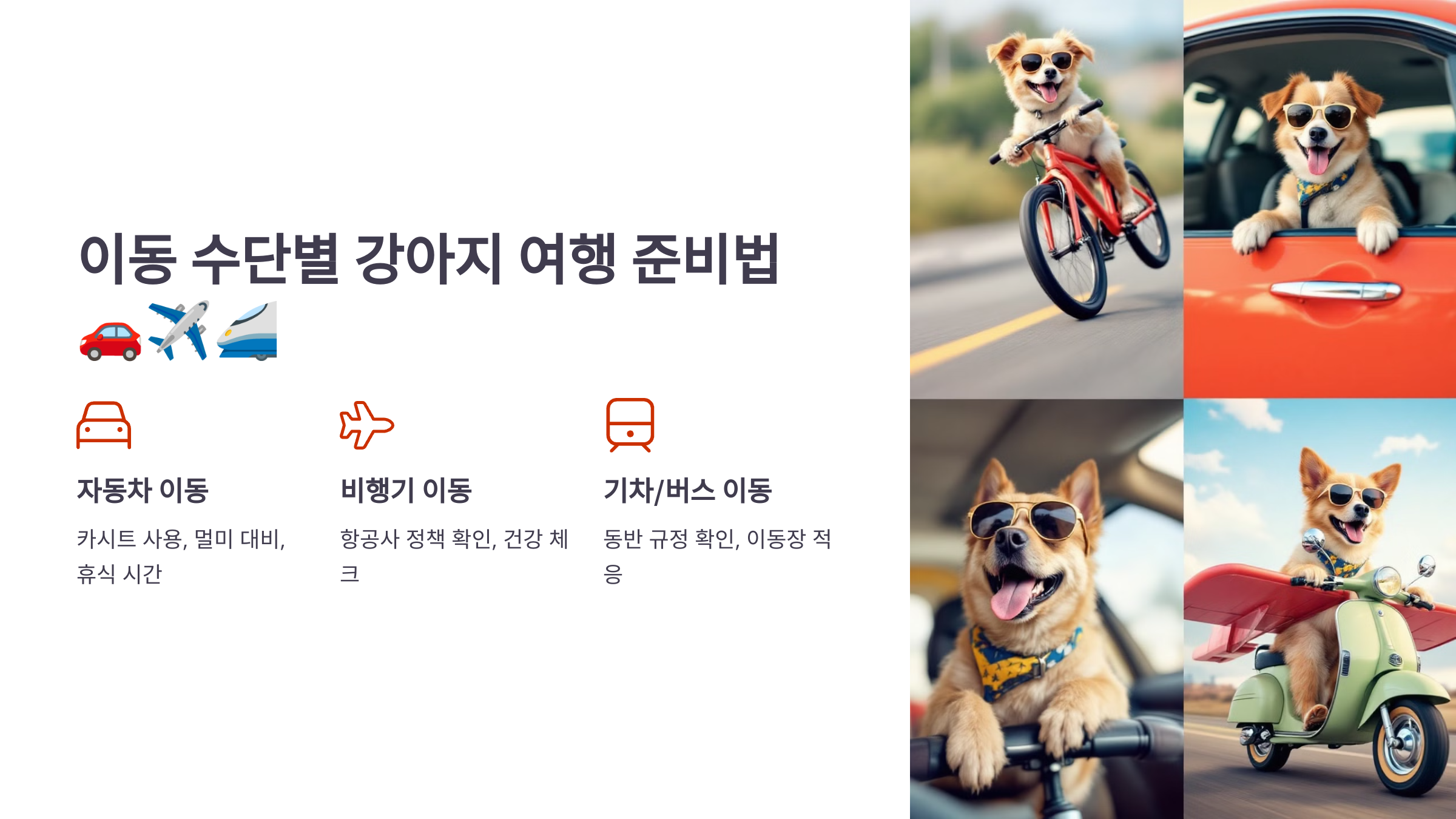 - 이동 수단별 강아지 여행 준비법 🚗✈️🚄