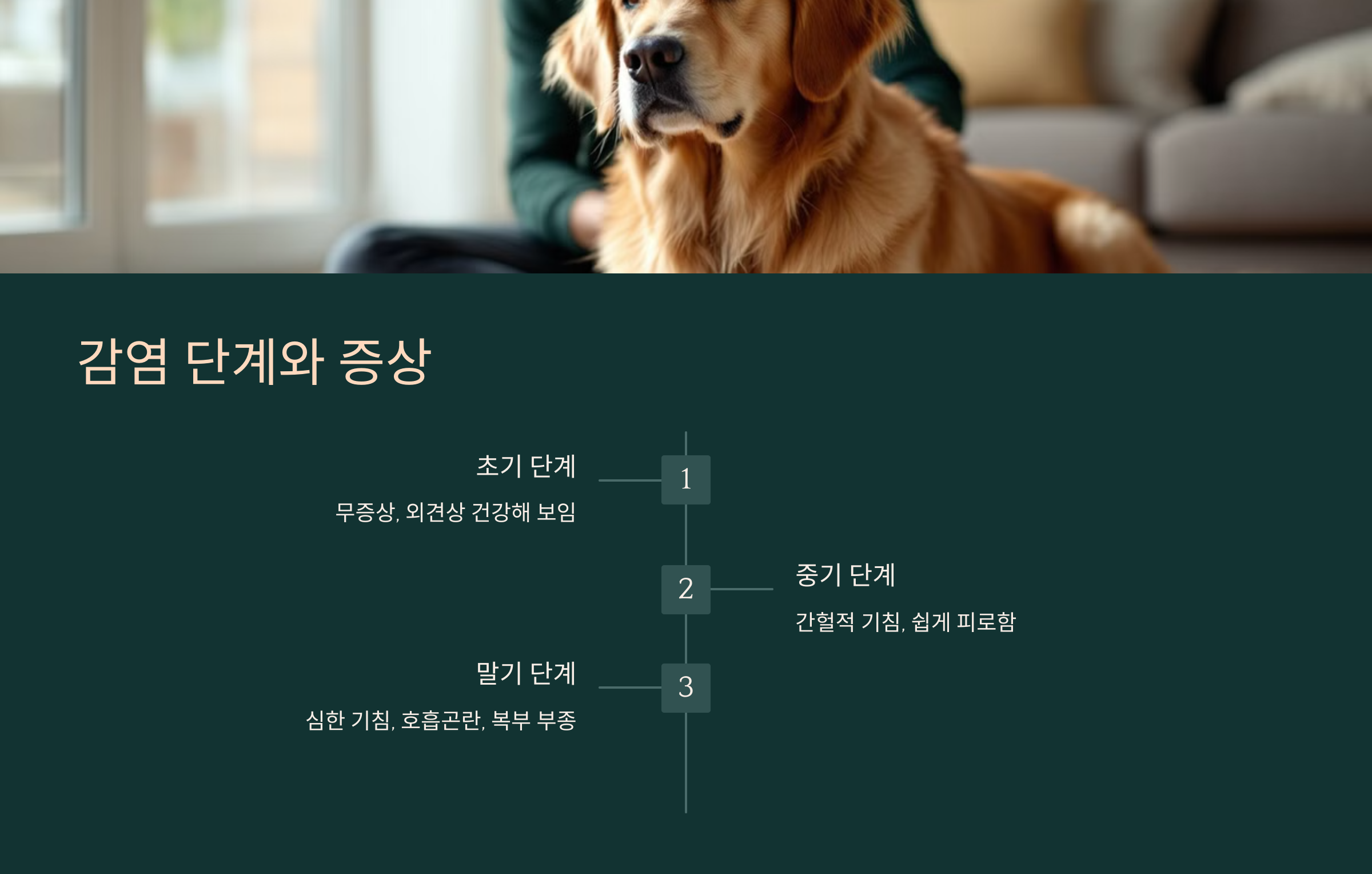 🐾 감염된 강아지는 기침, 호흡 곤란, 체중 감소 등의 증상을 보일 수 있습니다.